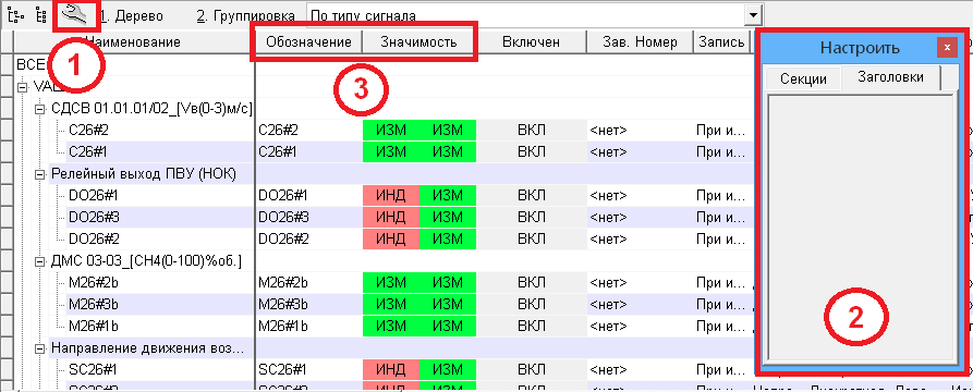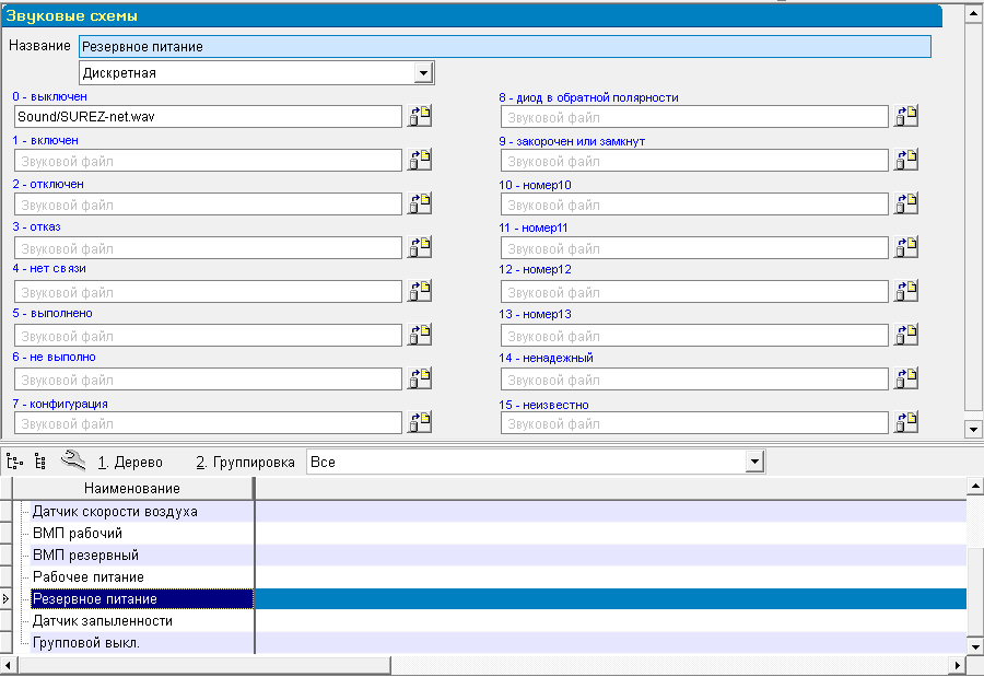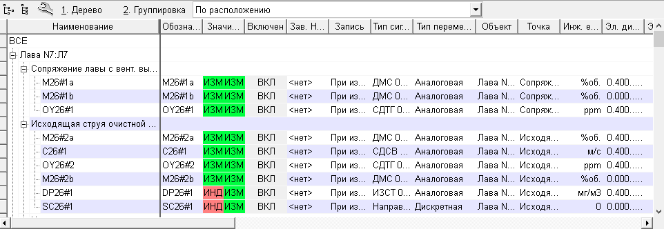 Так таблица с названием «Переменные» содержит список переменных и средств измерения, таблица с названием «Объекты контроля» содержит список контролируемых технологических объектов на текущем объекте эксплуатации, а таблица «Звуковые схемы» содержит список связей звуковых оповещений для различных состояний переменной.