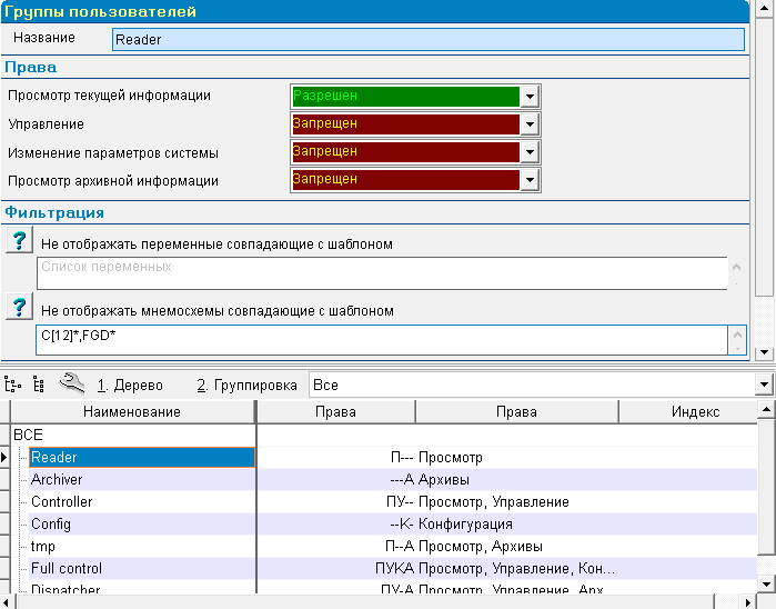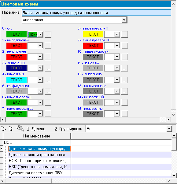 Так, к примеру, запись с данными о переменной таблицы Переменные может ссылаться на запись из таблицы Цветовые схемы, делая возможным указать для этой переменной какую именно цветовую схему из содержащихся в таблице «Цветовые схемы» использовать для цветовой индикации этой переменной в списках переменных на графиках, трендах и на объектах мнемосхем.