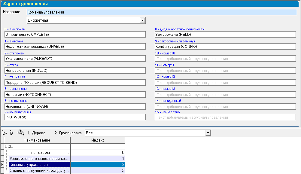 Если на запись этой таблицы может быть ссылка (например на записи таблицы «Типы сигналов» ссылаются записи из таблицы «Переменные») и в конфигурации нет записей, которые ссылаются на какую-либо запись текущей таблицы, то данные для этой записи будут отображаться серым цветом.