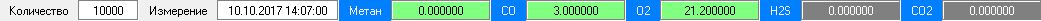 Независимо от того график какого параметра отображается в данный момент, в области значений будут отражены данные по всем газам измеренные устройством в данный момент времени.