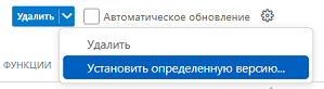 Для смены версии расширения, на странице информации о расширении, в верхней части, необходимо вызвать выпадающий список версий у кнопки «Удалить» и выбрать пункт «Установить определенную версию».